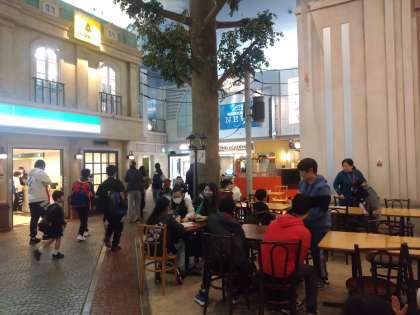 集合時間が近づき、体験活動を終え、くつろいでいます。