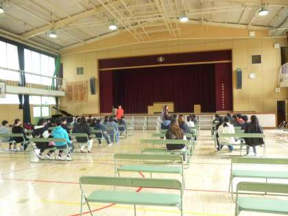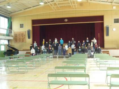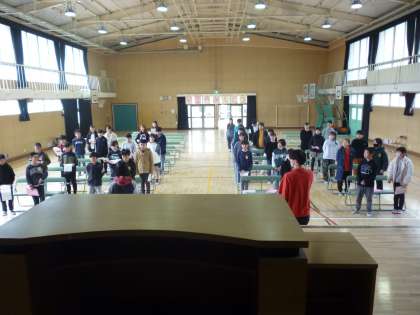 6年生は卒業式の練習を始めました。座る席、ひな壇の立ち位置を確認し、呼びかけと歌の練習をしました。声がしっかり出ており、やる気が態度によく表れていました。
