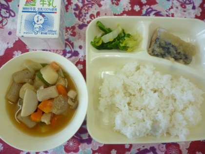 3月15日の給食は「さごしのおろしじょうゆかけ」「さといもと野菜の含め煮」「菜の花のおひたし」です。6年生は小学校最後の給食です。いつまでも小学校の給食の味を覚えていってほしいと思います。