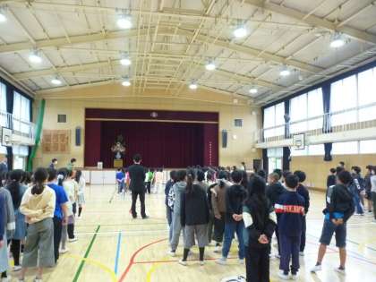 4月8日、いよいよ令和6年度がスタートしました。2年生〜6年生が講堂に集まり、始業式を行いました。(1年生は入学してすぐなので、教室です)