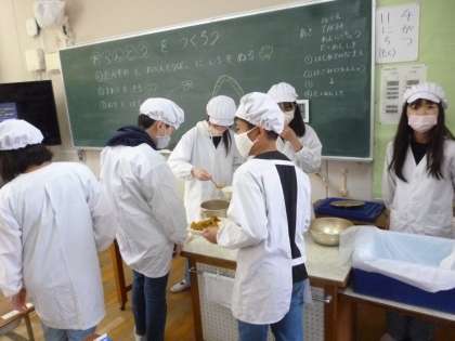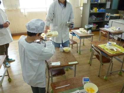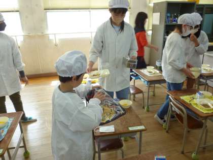 給食を手伝っています(6年生)