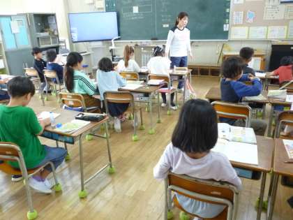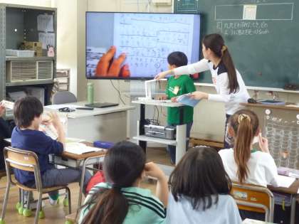 3年生はかけ算の表を見てかけ算のきまりを見つける学習をしました。ノートに見つけたきまりを書き、みんなの前で発表していきました。