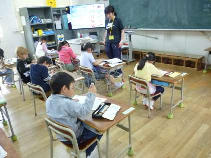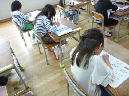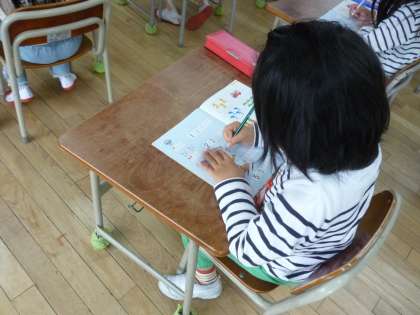1年生は今週からひらがなと数字を書き始めています。今日は「1〜5」と「と」「へ」を書きました。ていねいに書こうとよく頑張っていました。