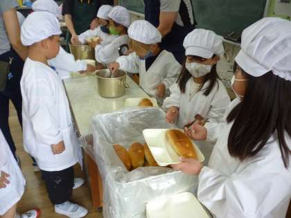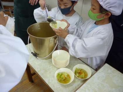 1年生は初めて視力検査をしました。ランドルト環の開いた方向を指で示すなどすぐに慣れて検査できました。また今日から給食は6年生の応援が終了し、自分たちで運搬と配膳をしました。おかずの配膳も上手でした。