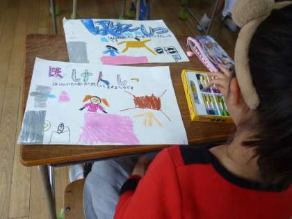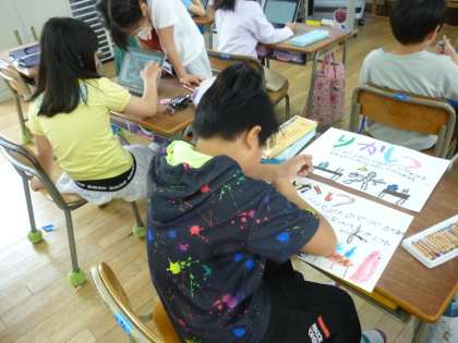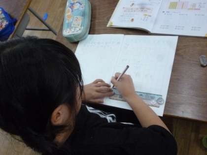 2年生は1年生に学校の施設を紹介します。そのポスターを作っていきました。算数では筆算の仕方を学習しました。定規できれいに線を引いていました。