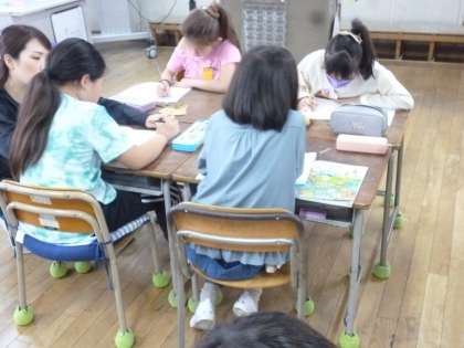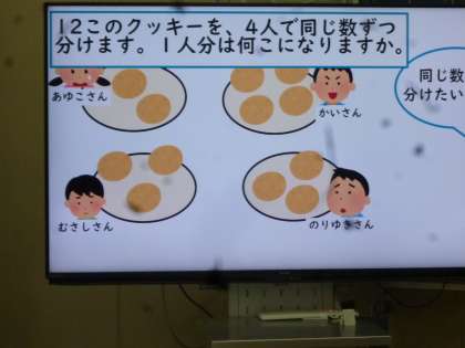 3年生は算数で割り算の文章問題を考えました。グループになって考えを交流していきました。