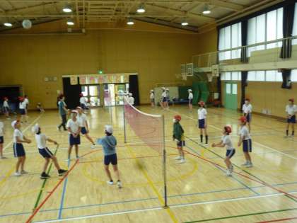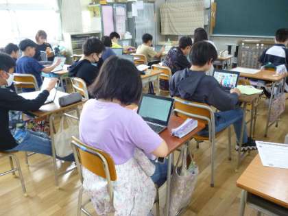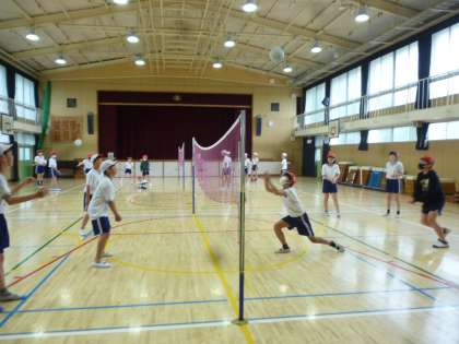 6年生もバレーボールの練習をしています。5年生の時から練習しているのでラリーがよく続いていました。教室では「全国学力・学習状況調査」の児童質問紙を端末で答えました。