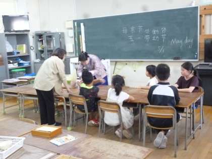 今日から放課後の国際クラブが始まりました。国際クラブは中国にルーツがある子どもたちが放課後に集まり、中国の先生に中国文化を教えてもらいます。今日は手首に巻く飾りを作りました。