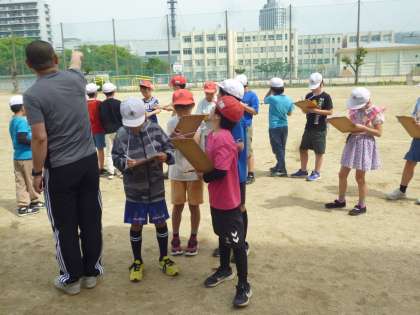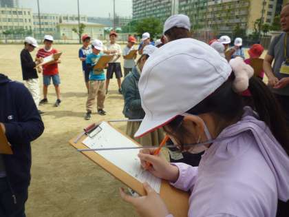 5年生は理科で雲の観察をしました。運動場で空を見上げ、雲の形や動きを観察して記録していきました。。