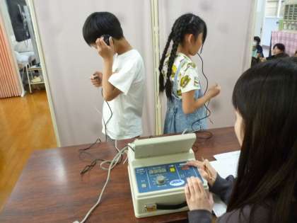 1年2年3年5年生は聴力検査をします。今日は3年生と5年生が検査をしました。