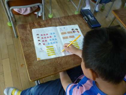 1年生は「5は1と4」というように数の合成について学習しています。これがたし算につながります。
