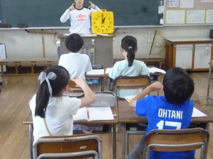 1時間は60分、1分は60秒など、時計も使って復習しました。