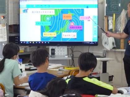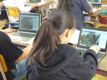 5年生は理科で雲の様子を学習しています。外に出て雲の様子を調べる予定でしたが改正なので、インターネットで調べることにしました。「アメダス」など気象用語も調べていきました。