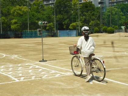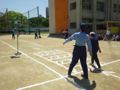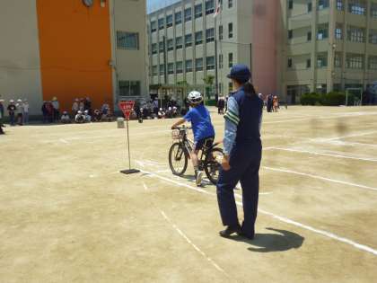 5年生と6年生は自転車の正しい乗り方を中心に教えてもらいました。歩行と同じように左右を確認して安全に留意していきました。
