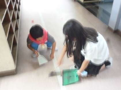 たて割り清掃が始まりました。