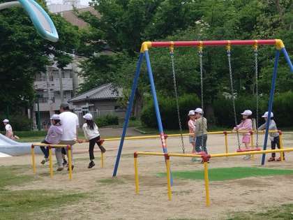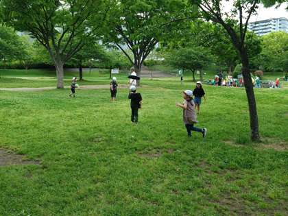 元気いっぱい、遊んで遠足を満喫しています。