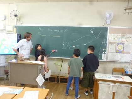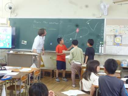 4年生は大阪や東京など日本の主要都市の天気をグループで決め、気象キャスターになっって英語で天気を発表していきました。とても楽しい活動です。