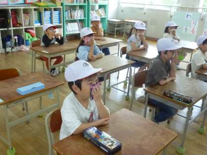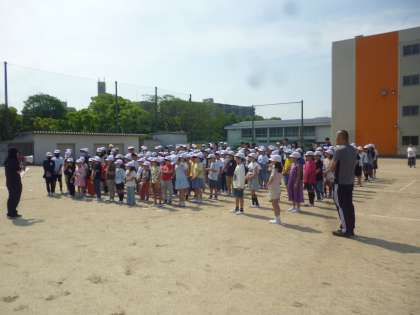 5月21日、火災の避難訓練をしました。教室でハンカチで口をふさぐこと、静かに避難することなど指導を受け、訓練に臨みました。みんな静かに速やかに運動場に避難することができました。