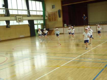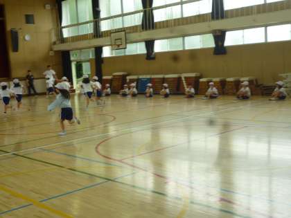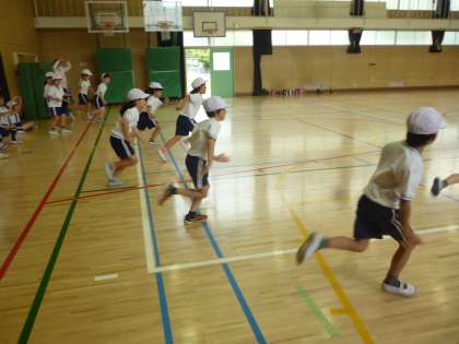 1年生と2年生は体力テストでシャトルランをしました。1年生は初めてなのでやり方の見本を見せました。いきなりダッシュをしてしまうので、担任からセーブして同じペースで走るよう指導を受けて取り組みました。