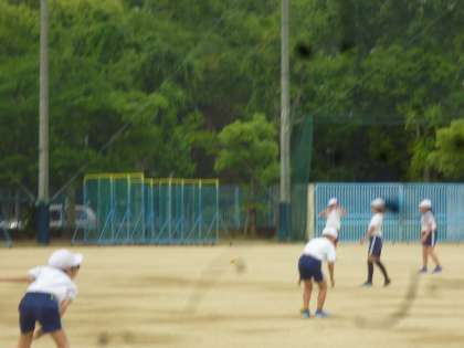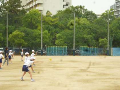 3年生はボール投げの練習をしました。遠くに投げること、きちんとボールを受けることを目標に練習していきました。