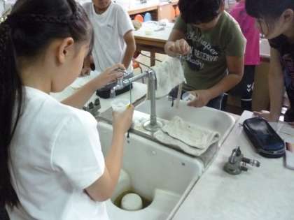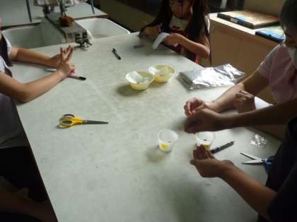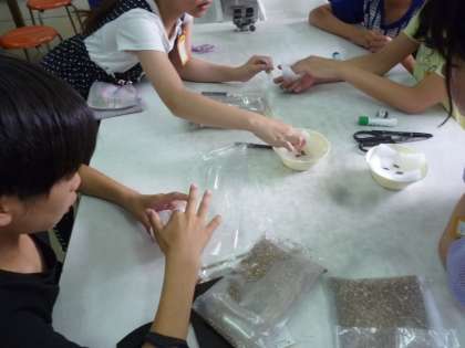 5年生は理科で種の発芽に何が必要か実験をしました。今日は「水が必要か」を調べるために水で湿った脱脂綿の上に種を置き、乾いた脱脂綿の上にも種を置いて実験の準備をしました。