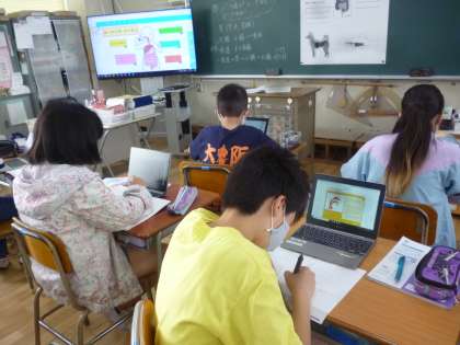 6年生は理科で食物の消化について調べています。胃や腸の働きなど本やインターネットで調べてまとめていきました。