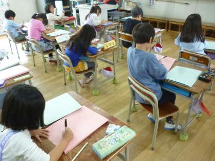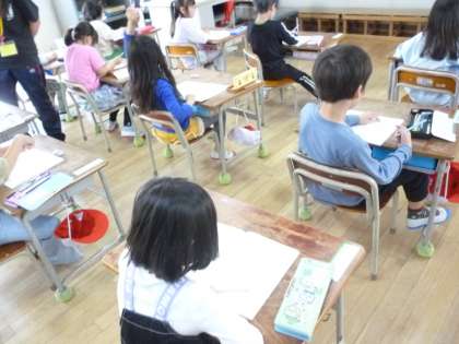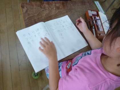 1年生はノートにひらがなでしりとりをして書いていきました。不快な言葉を書かないなど約束があり、しっかりと考えてしりとりをしました。