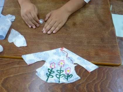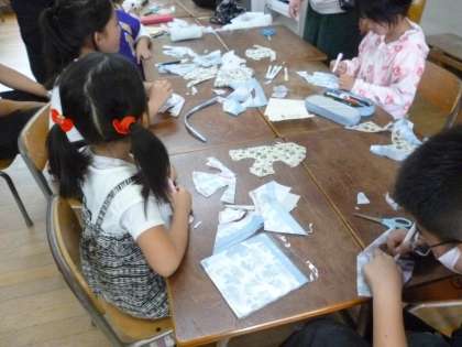 本校では木曜日の放課後を基本として中国にルーツのある子どもたちが集まって中国の文化について学んでいます。講師の先生は教育委員会から派遣していただく中国の方です。今日なキッチンペーパーでミニ服を作りました。きれいに色も縫って思い思いの服ができました。