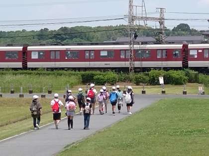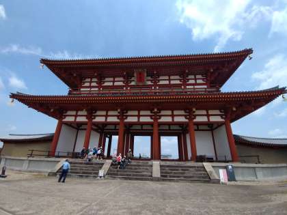 5年生と6年生は遠足で平城京跡に行きました。5年生と6年生の混合グループで廻ります。朱雀門をくぐってスタートです。