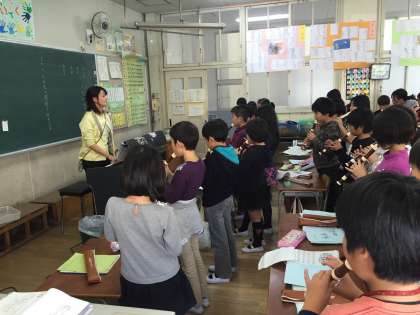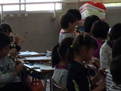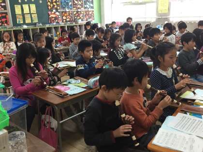3年生は、学年全体でリコーダーを練習しています。リコーダーを吹き始めて半年あまりですが、きれいな音色が出せるようになっています。
