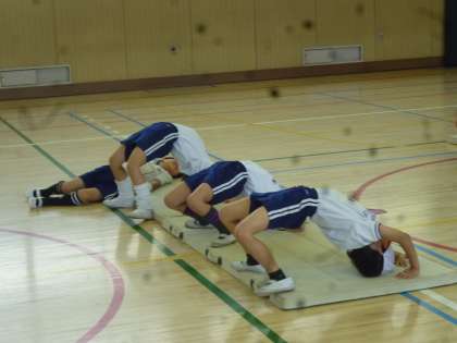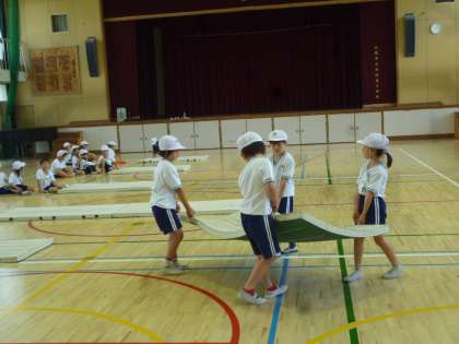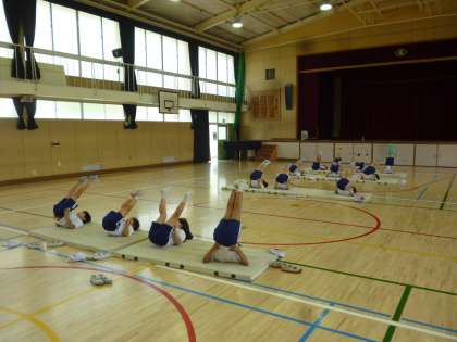 2年生はマット運動をしました。マットを4人で安全に運ぶ基本からていねいに進めました。ブリッジなど柔らかい動きが素晴らしかったです。