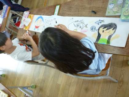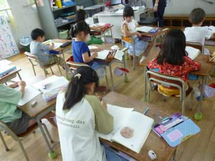 1年生は「アルマジロ」についての説明文を学習しました。今日は初めて読むので初読の感想を書きました。「光まつり」で使う絵も描いていきました。
