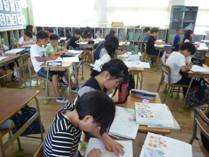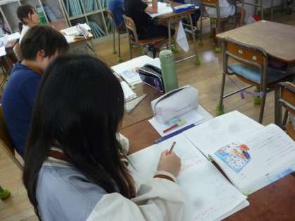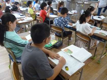 4年生は国語で物語の学習をしています。今日は主人公の気持ちについて考え、文章にまとめていきました。