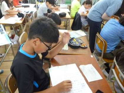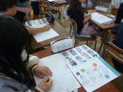 4年生は昨日の社会見学のまとめをしました。パンフレットを見ながら見学したことを思い出してまとめていきました。
