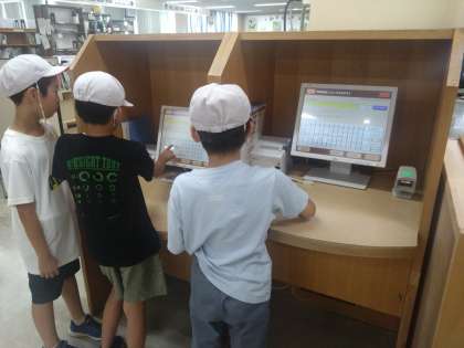 本の検索方法を教えてもらい、さっそく本を探していました。