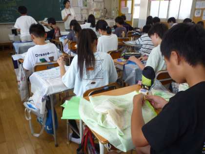 家庭科の学習(朝食を考えよう、エプロン作り)