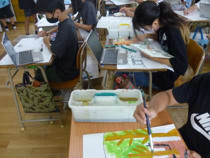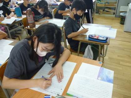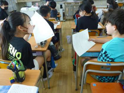 6年生は国語で「風切るつばさ」の物語を読み取っています。今日は登場人物同士の交流について読み取っていきました。読み取った内容は席の近く同士で確認し合いました。