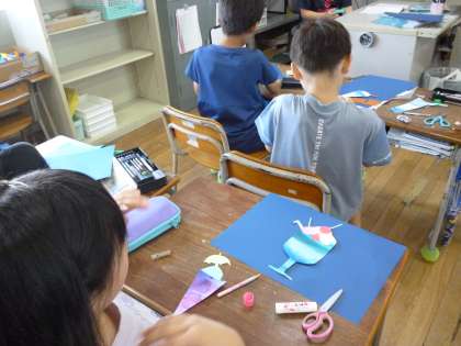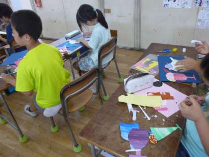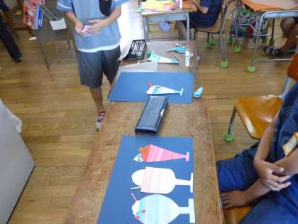 3年生は図工でパフェを仕上げていきました。グラデーション模様に塗った画用紙をパフェの形に切って仕上げました。楽しいパフェがたくさんできました。。