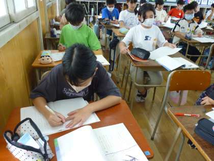 6年生は国語で物語「風切るつばさ」を学習しています。今日は初めて読んで思った感想をノートに書いていきました。シーンと静まった教室で、真剣に学習している空気感でした。