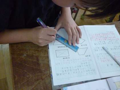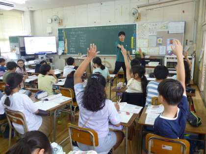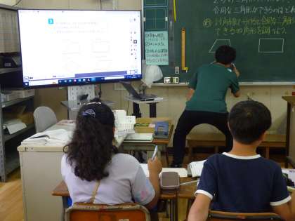 5年生は四角形に対角線を書き、合同な三角形ができる四角形を考えました。いろいろな四角形が印刷されたプリントに対角線を書き、考えていきました。社会科での水産業の学習では水産物が使われている食材を発表し合いました。「かまぼこ」「ちくわ」「たこ焼き」などたくさんの食材が発表され、みんな何回も手を挙げて大いに盛り上がる学習になりました。