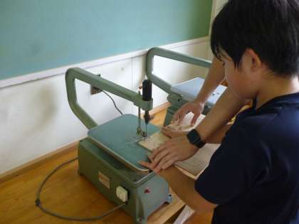 5年生は図工で初めて電動のこぎりを使いました。作品はホワイトボードです。のこぎりの歯を取り付け、板を切っていきました。初めてなので難しそうでしたが、慣れてくると上手になっていきます。作品の完成が楽しみです。