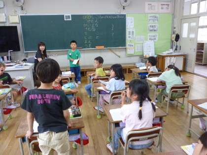 1年生は自分が書いた作文をみんなの前で発表しました。聞いていたみんなはその作文のよいところを見つけて教えてあげました。心温まる学習になりました。
