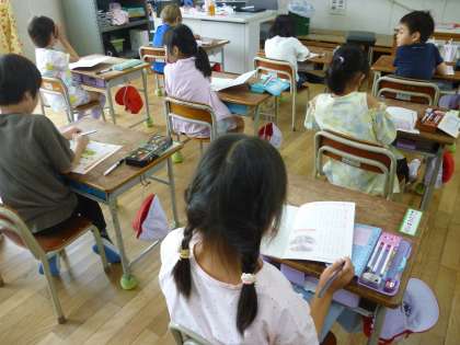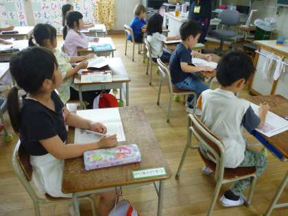 1年生は日記を書き始めました。「○○先生、あのね。」ではじめ、自分の生活の様子を書いていきます。みんな、担任の先生に見てもらおうと張り切って書いていました。