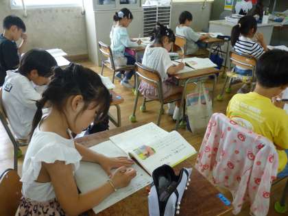 2年生は説明文を読み取る学習をしています。はじめに全文を読み、課題に沿って読み取ったことをプリントに書いていきました。静かで一生懸命に学習する姿に感激し、大いに褒めてあげました。