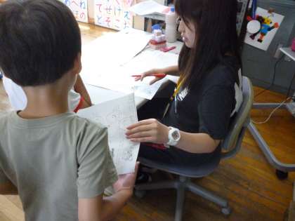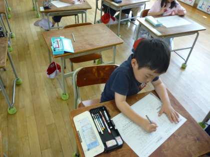 また算数はプリントで算数の復習して先生にチェックしてもらいました。