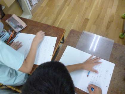 5年生は1学期のことを思い出して作文をしました。1学期のくらしで気がついたことや1番がんばったこと、2学期にどうつなげていくかを考えて書きました。みんな、よく考えて