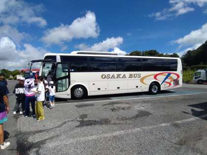 赤松PAで休憩して、そのあとはバス内でCDに合わせて歌を歌っています。