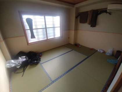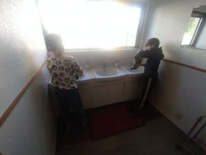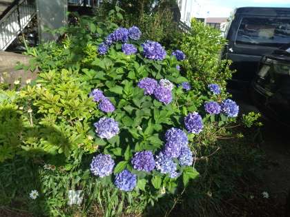 宿舎の横にはあじさいが満開です。部屋です。新しいお茶を入れるので洗面所で水筒を洗っています。