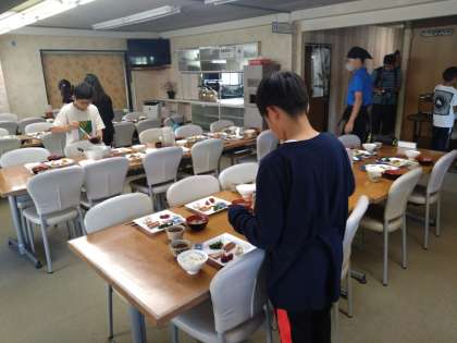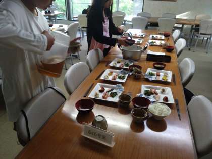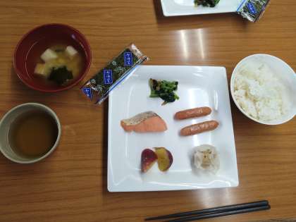 朝食の準備です。手際はよくなりました。おかずの種類が豊富です。