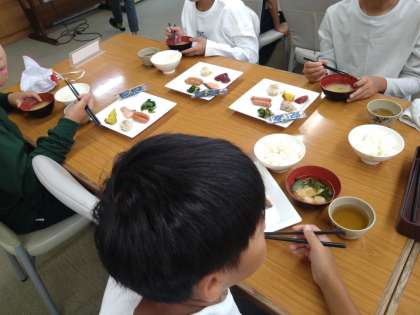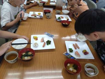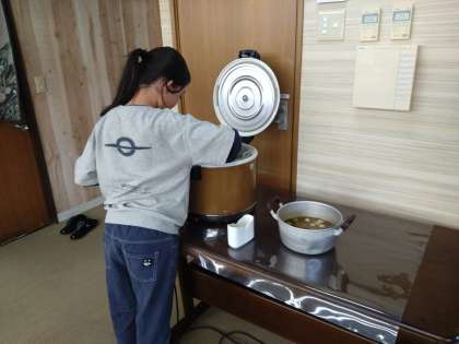 朝から食欲いっぱいです。おかわりをする子もたくさんいました。このあと登山に備えて少し休憩です。